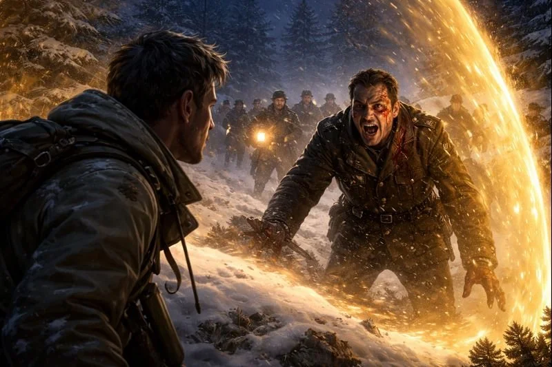 Camminarono nella neve fino all’abitato. Sotto una tettoia bassa di legno scuro, nonostante il freddo, c’erano altri due soldati. Fucili già alzati, guanti sporchi, la faccia dura di chi ha sonno, noia, fame e rabbia nello stesso posto.